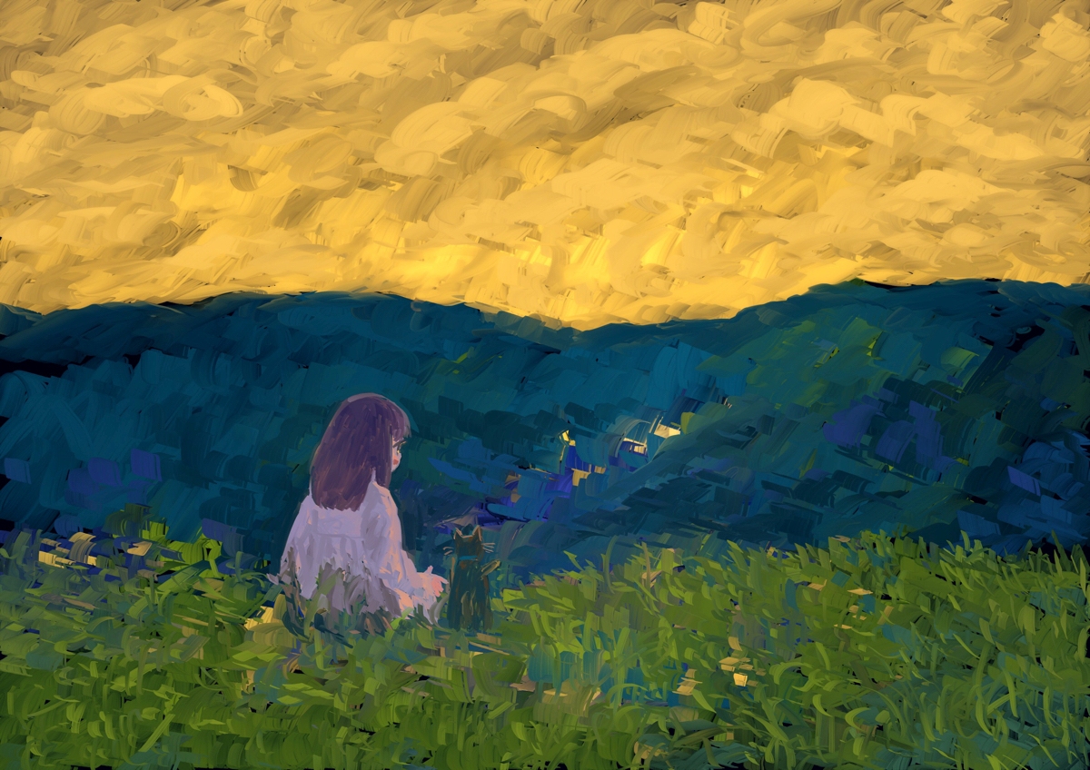 秋收的季节,日头依旧毒辣 阿藤戴着藤爷爷退役的草帽,叼着狗尾巴草,躺在田埂上,看着天上的云朵。 年迈的黑子在阿藤的身边小憩 田间藤奶奶和藤爷爷弯着腰,挥舞着镰刀,割着金黄的麦子。 藤奶奶觉得阿藤是可怜的孩子,不让阿藤干这种力气活 藤奶奶真的很宠溺阿藤 藤奶奶告诉阿藤自己有一个妈妈 阿丽